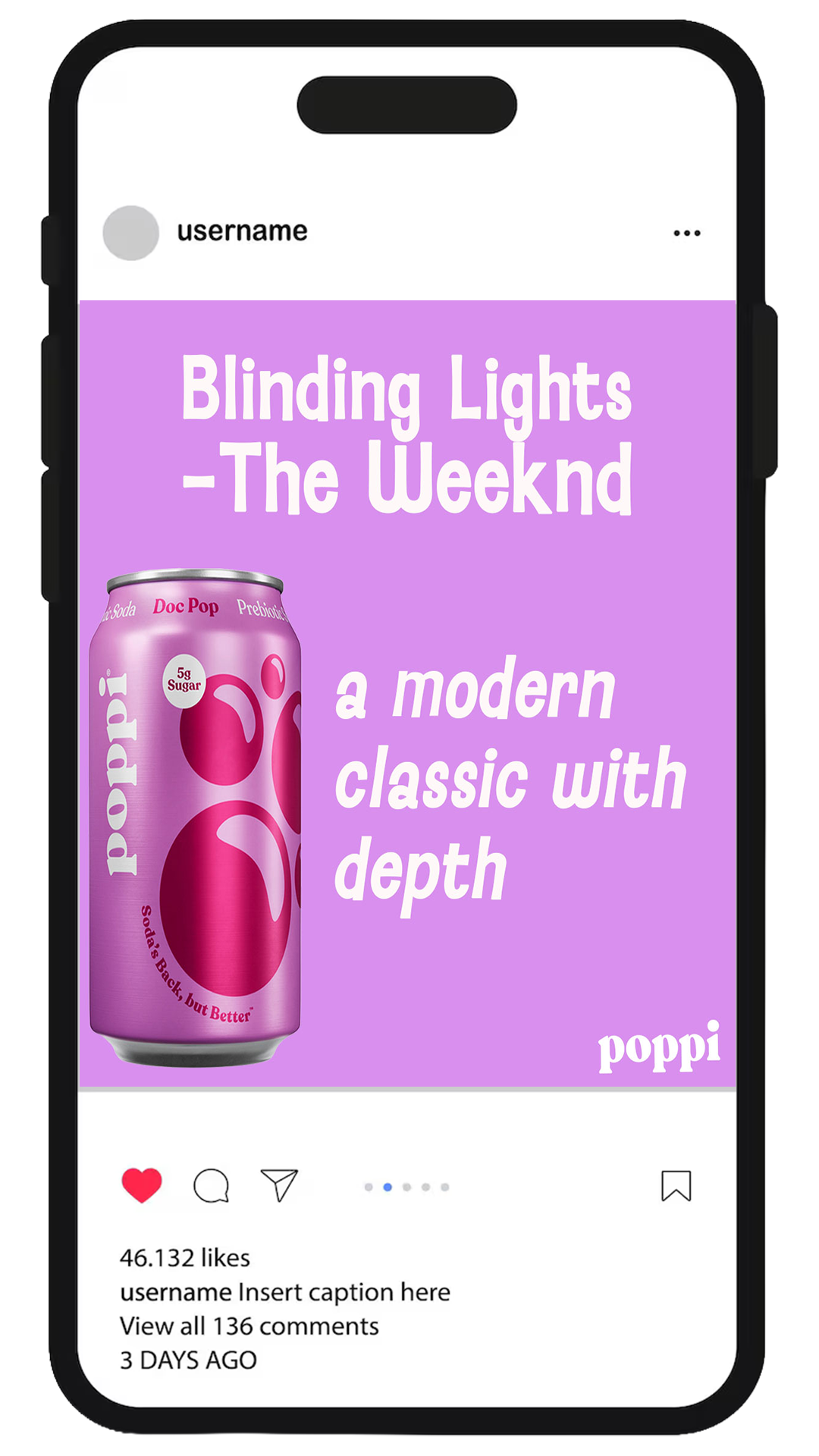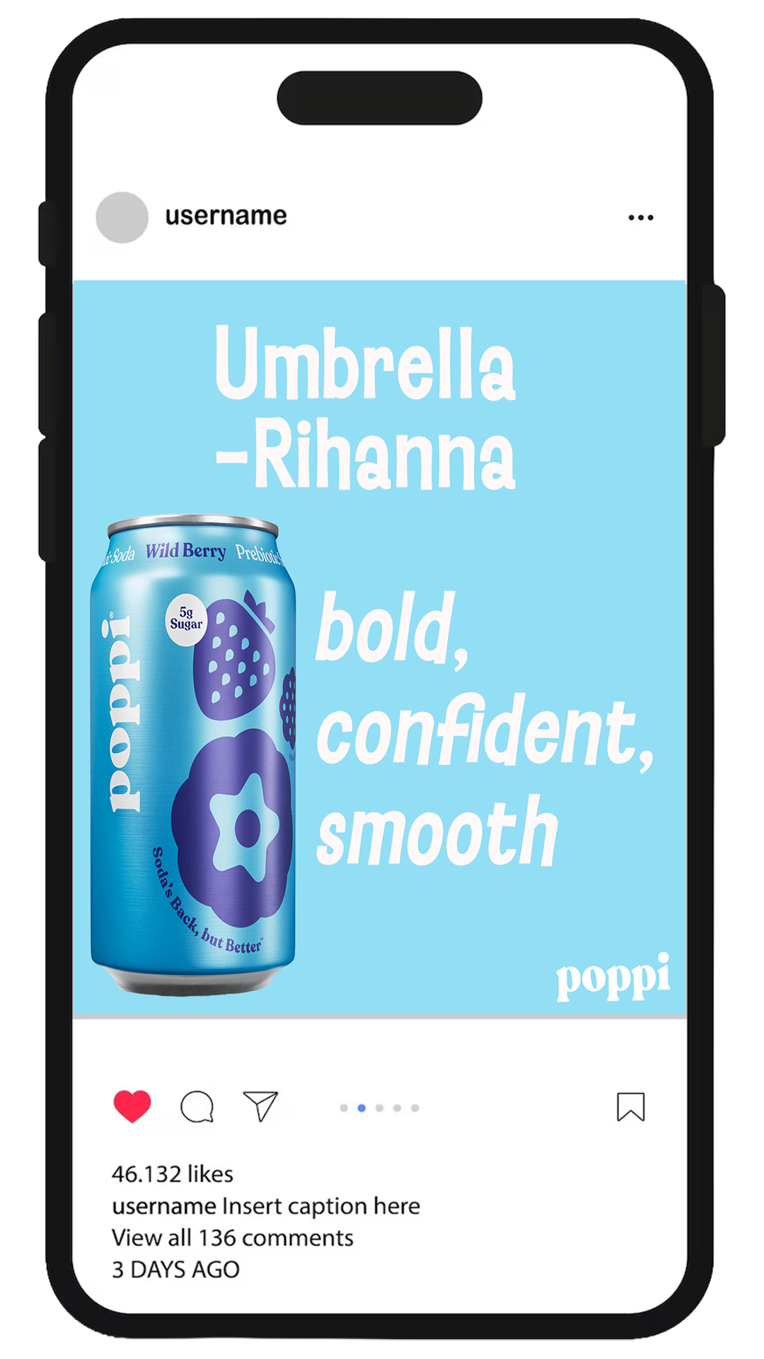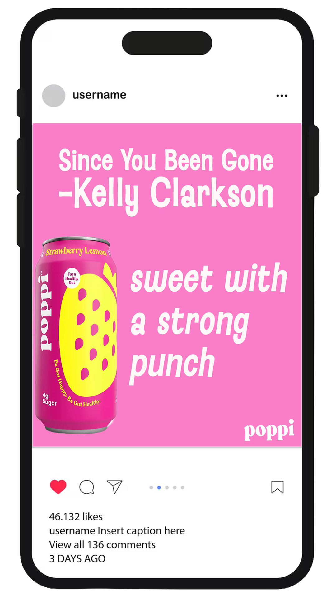 A digital advertisement for Poppi featuring static and motion assets designed for social and web formats. Emphasis was placed on scalability, motion hierarchy, and maintaining brand consistency across sizes.